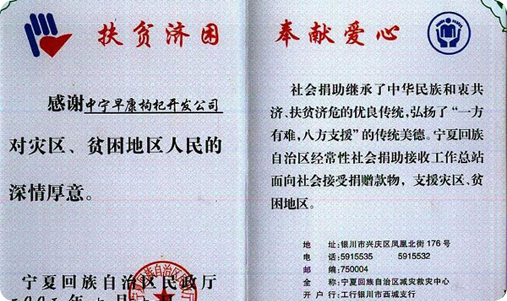 早康枸杞繼捐贈(zèng)價(jià)值36萬元物資后,又捐10萬現(xiàn)金。