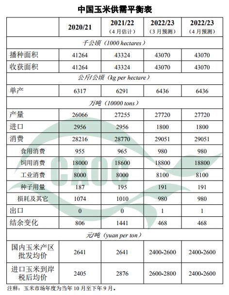 中國農(nóng)業(yè)農(nóng)村部公布農(nóng)產(chǎn)品供需形勢分析報告:本月預(yù)測,2022/23年度中國玉米生產(chǎn)、消費、貿(mào)易和價格預(yù)測數(shù)與上月保持一致。春耕在即,玉米存儲成本增加,農(nóng)戶出售余糧意愿增強(qiáng),主產(chǎn)區(qū)各類糧食企業(yè)收購進(jìn)度較上年同期快約6%。需求方面,蛋禽、肉禽養(yǎng)殖利潤有所回升,但生豬養(yǎng)殖仍處于虧損狀態(tài),整體飼用消費需求恢復(fù)不及預(yù)期,而玉米深加工市場維持低庫存低生產(chǎn)狀態(tài),部分工廠因虧損開啟檢修或停機(jī)后,下游需求仍舊清淡,多以消化庫存為主,疊加進(jìn)口增加、稻米拍賣入市等因素影響,預(yù)計短期內(nèi)國內(nèi)玉米價格弱勢運行。隨著消費持續(xù)恢復(fù),種植成本提供下方支撐,后期玉米價格將止跌企穩(wěn)。