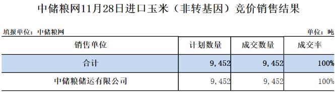 2023年11月28日中儲糧網(wǎng)進口玉米(非轉(zhuǎn)基因)競價銷售結(jié)果