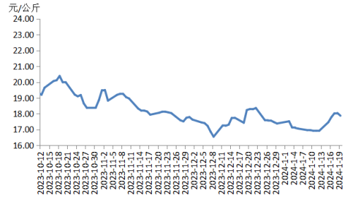 本周華東地區(qū)豬肉價(jià)格環(huán)比小幅上漲,周內(nèi)先漲再小幅下跌。周內(nèi)散養(yǎng)戶和規(guī)模養(yǎng)殖場(chǎng)出欄量略有減少,生豬及豬肉供應(yīng)量下降;“臘八節(jié)”前,山東部分企業(yè)備貨積極,豬肉訂單量增加,銷售速度加快,帶動(dòng)周內(nèi)價(jià)格上漲,僅周末時(shí),因豬肉銷售速度減慢,價(jià)格小幅下跌,跌幅小于周內(nèi)漲幅。