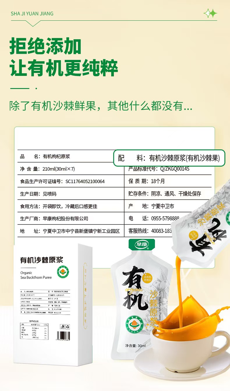 早康有機(jī)沙棘原漿210ml